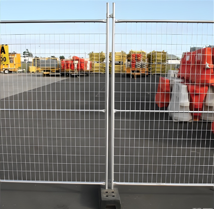 Vorübergehender Zaun, auch als tragbarer Zaun bezeichnet, bestehend aus Zaunplatten, Sockeln, Klemmen und anderen optionalen Zubehörteilen.ohne die Notwendigkeit, die Oberfläche durch Gräben von Löchern oder Grundlagen zu störenDer temporäre Zaun ist mit einer selbsttragbaren Struktur ausgelegt und kann durch Verriegelung miteinander verbunden werden, um die allgemeine Stabilität zu gewährleisten.